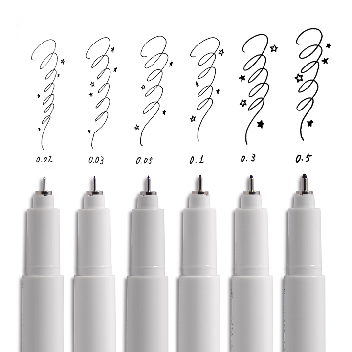 耐水性の水性顔料インクを採用し、超極細0.02/0.03/0.05/0.1/0.3/0.5mmをセットにしたミリペンのセット。